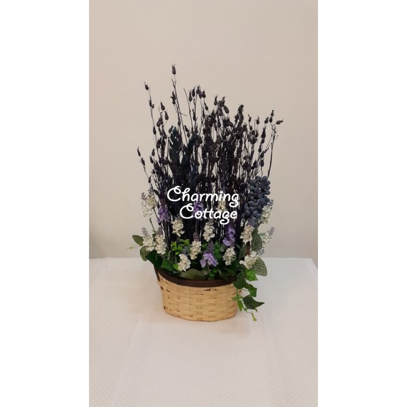 blue berry and purple lavender nicely decorated in an oval shaped ivory color basket. This is a great gift for man during this raya festival!